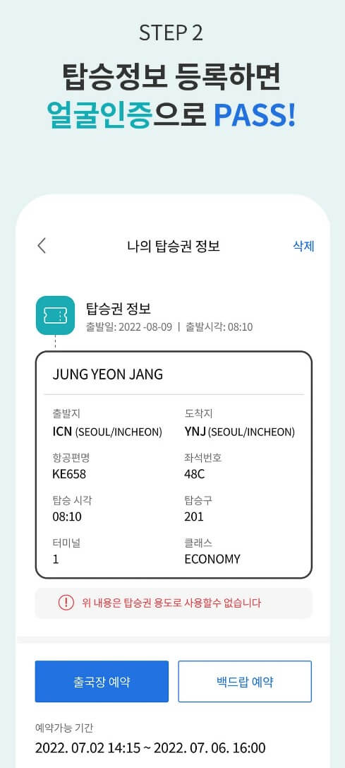 ▷ 여권과 얼굴로 한번만 등록하면 최대 5년간 이용가능 합니다.
